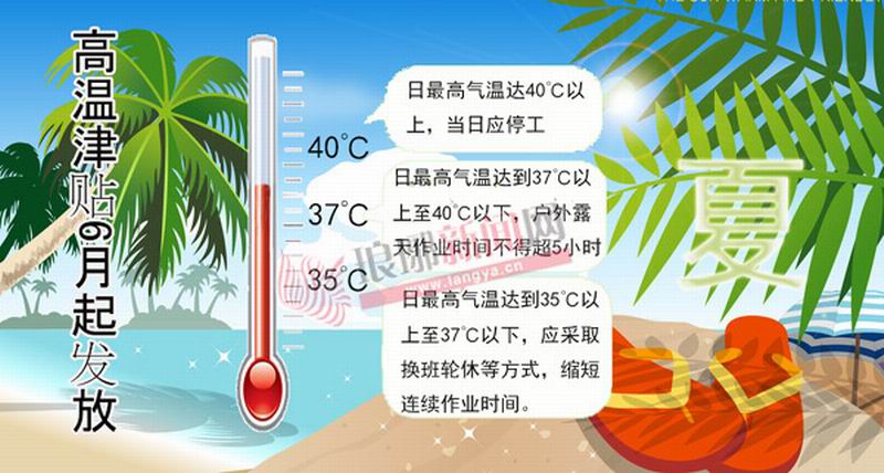 6月起,全国各地将陆续进入高温季节,而据传今年很有可能是史上最热一年。对于已到来的炎炎夏季,高温补贴发放标准如何?30日,记者从临沂市人社局获悉,根据规定,从事室外作业和高温作业人员每人每月200元;非高温作业人员每人每月140元,以保障企业安全生产和劳动者合法权益。